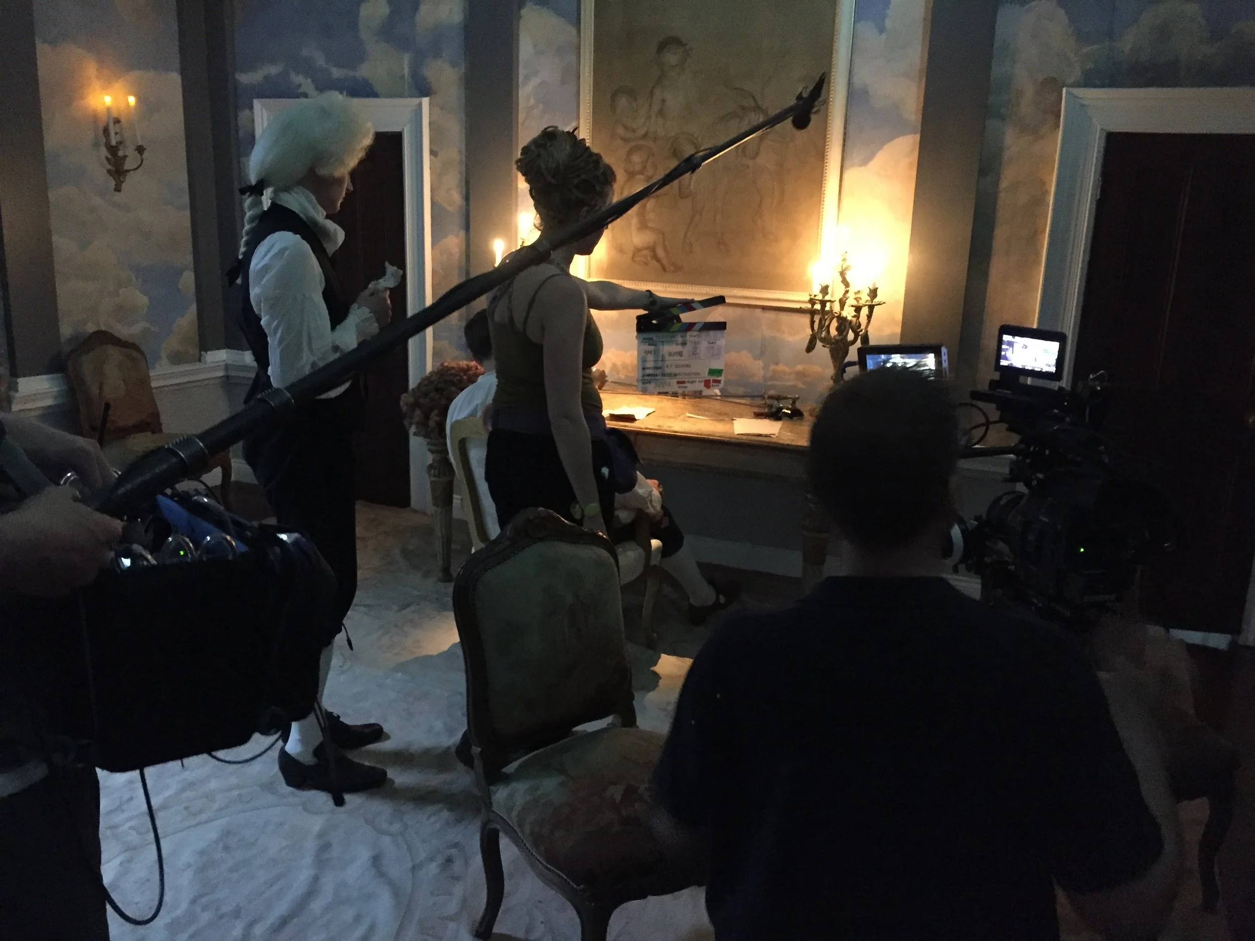 My university, Wimbledon College of Arts, trains all the individuals that a film needs in its art department - Set Design For Screen, Costume Design, Costume Interpretation and Technical Arts and Special Effects - and each course turns out staggering work. Yet these achievements are viewed individually, lacking context. For my final piece, I wanted to combine these separate courses, their talents and skills, into one project, where our ideas and designs could inform each other to make a fluid and holistic whole. I chose the Baroque period for its ability to challenge all areas of the art department and demand high quality work from us all. Together, utilising world building theory, we created a film set in 1715 Late Baroque England. To provide the necessary film crew and actors, I got in touch with acting school LAMDA, who facilitated an advantageous cross-educational collaboration, becoming the larger half of our project.